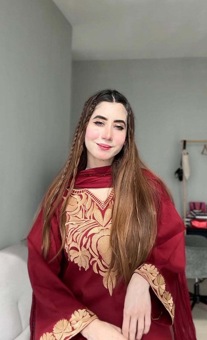 EMB SHIRT + EMB TROUSER WITH  SHAFFON DUPPTA