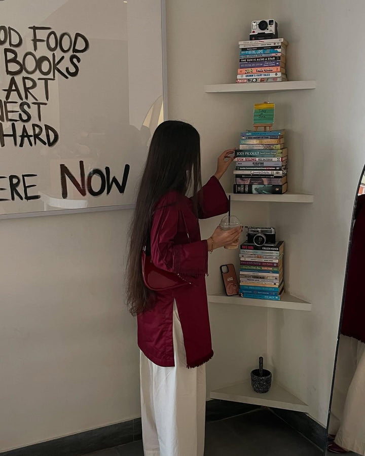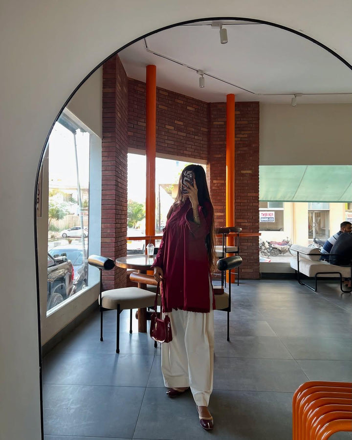 EMB SHIRT WITH LEASE WORK + PLAIN WHITE PLAZO